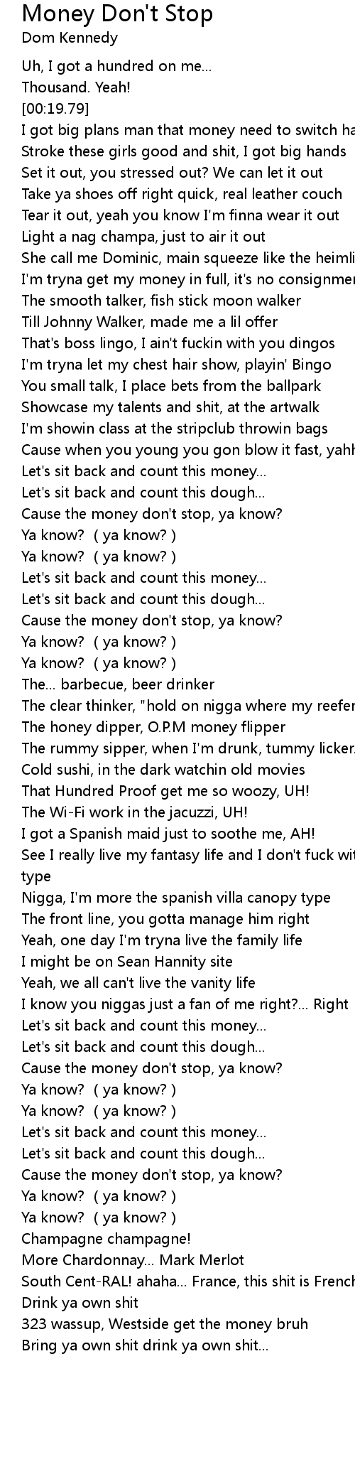 | [01:23.82] | Cause the money don't stop, ya know? |