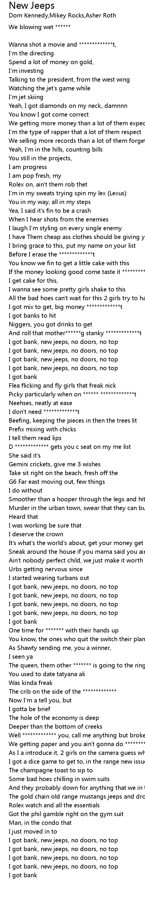 I got bank, new jeeps, no doors, no top |