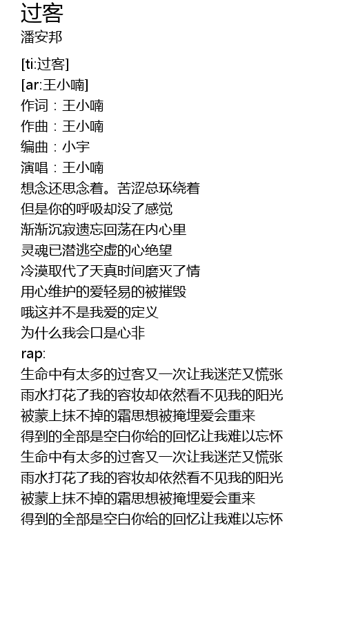 | [00:16.875] | 演唱:王小喃 |