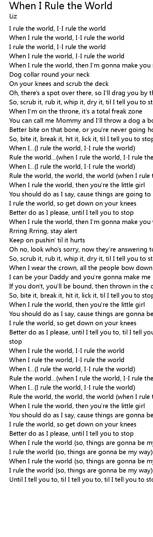 Rule the world, the world, the world (when I rule the world, I-I rule the world) |
