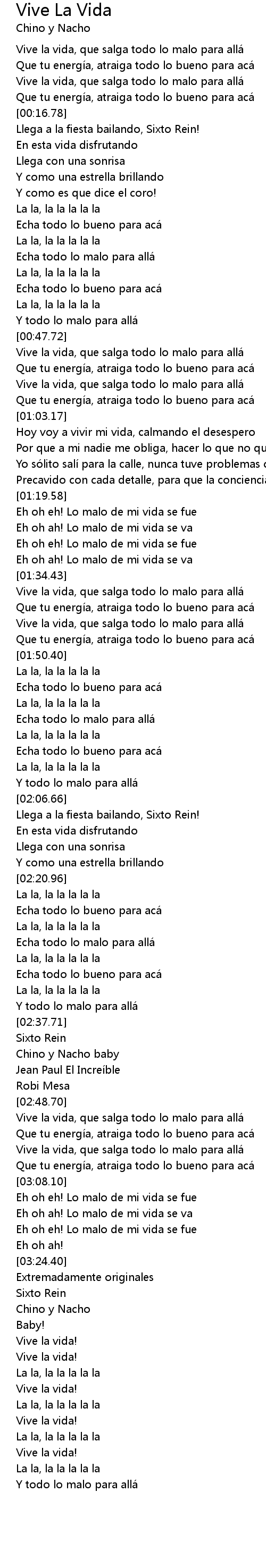 | [00:08.52] | Vive la vida, que salga todo lo malo para alla |