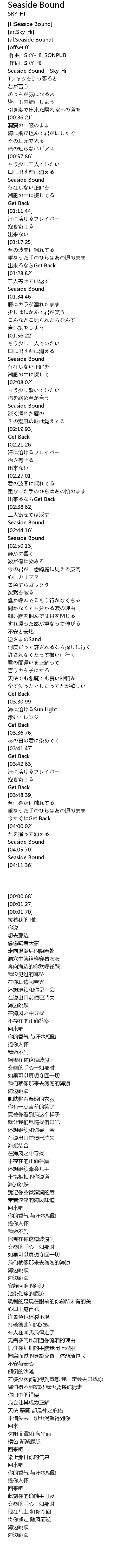 | [00:00.68] | Seaside Bound - Sky-Hi |