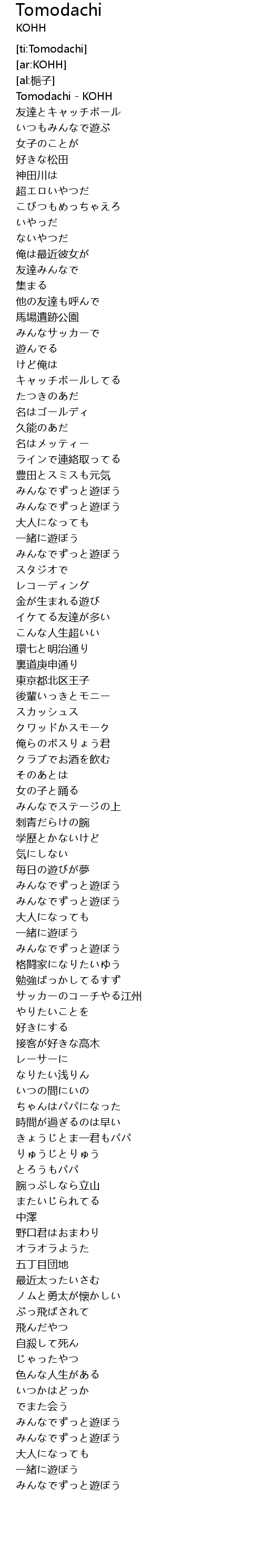 | [00:00.00] | Tomodachi KOHH |