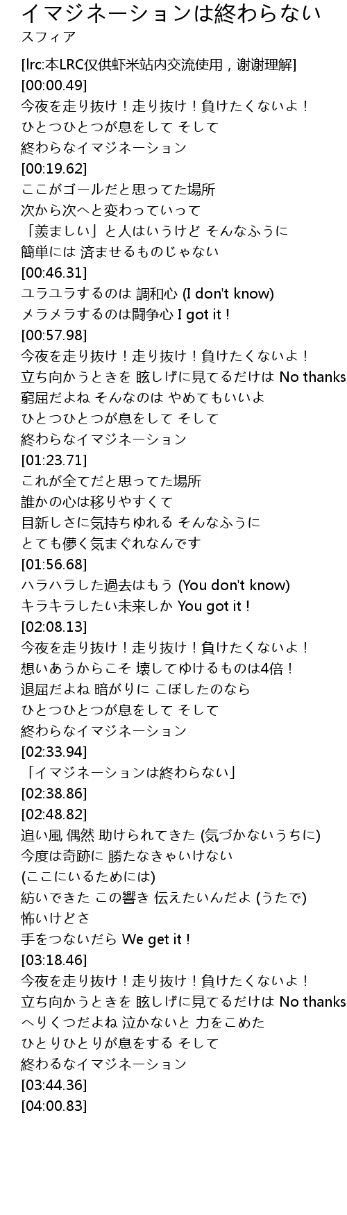 | [02:34.97] | 「イマジネーションは終わらない」 |