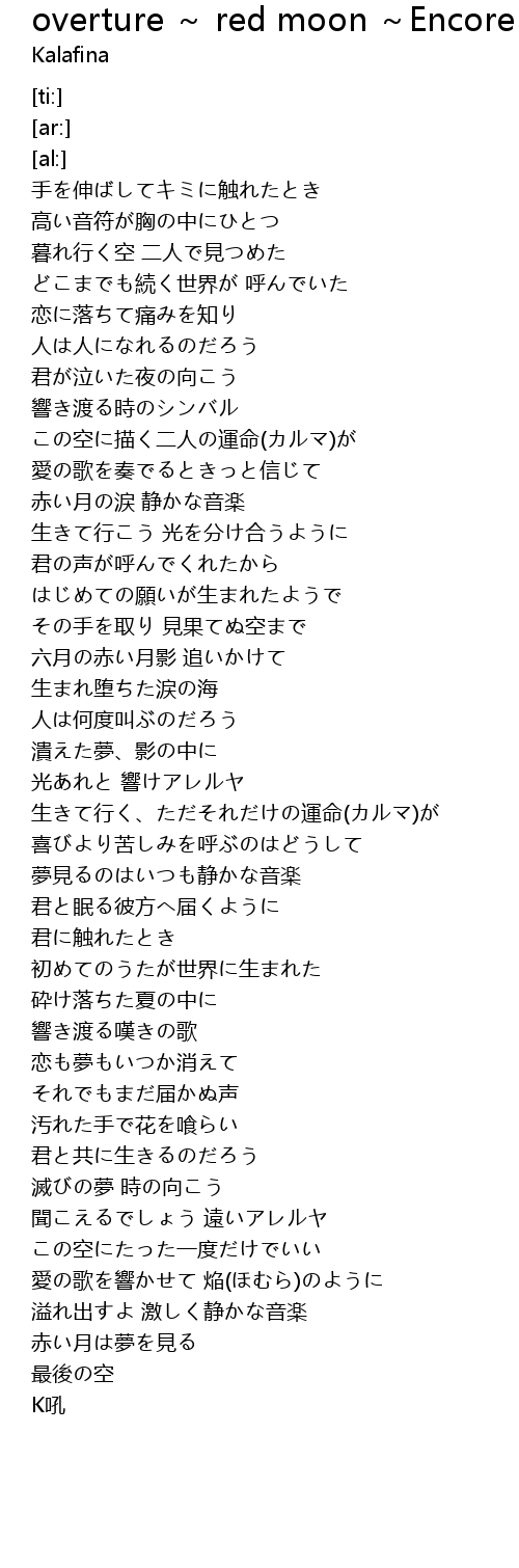 | [03:18.34] | 赤い月の涙 静かな音楽 |