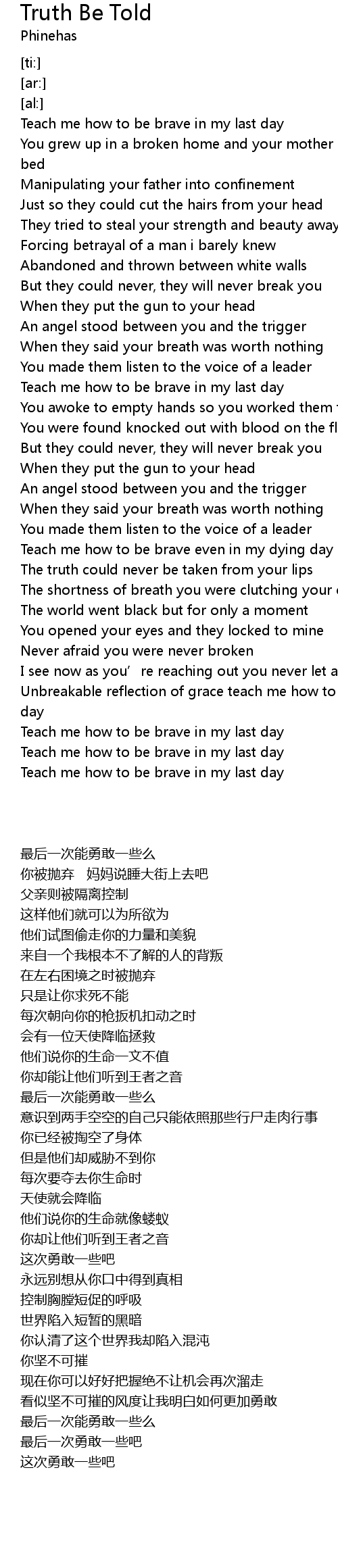 | [03:23.48] | Teach me how to be brave in my last day |