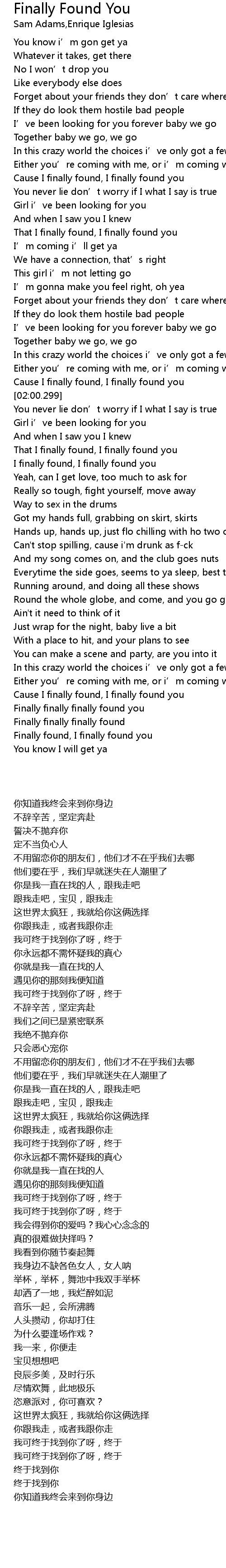 | [01:53.100] | Cause I finally found, I finally found you |