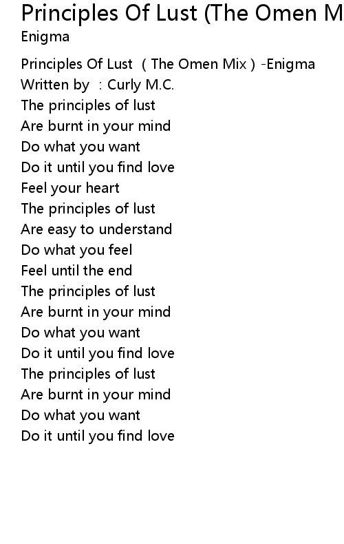 | [00:00.39] | Principles Of Lust The Omen Mix Enigma |