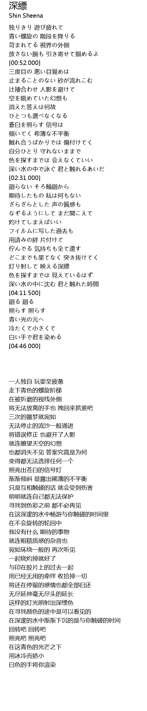 | [04:00.200] | 深い水の中に沈む 君と触れた時間 |