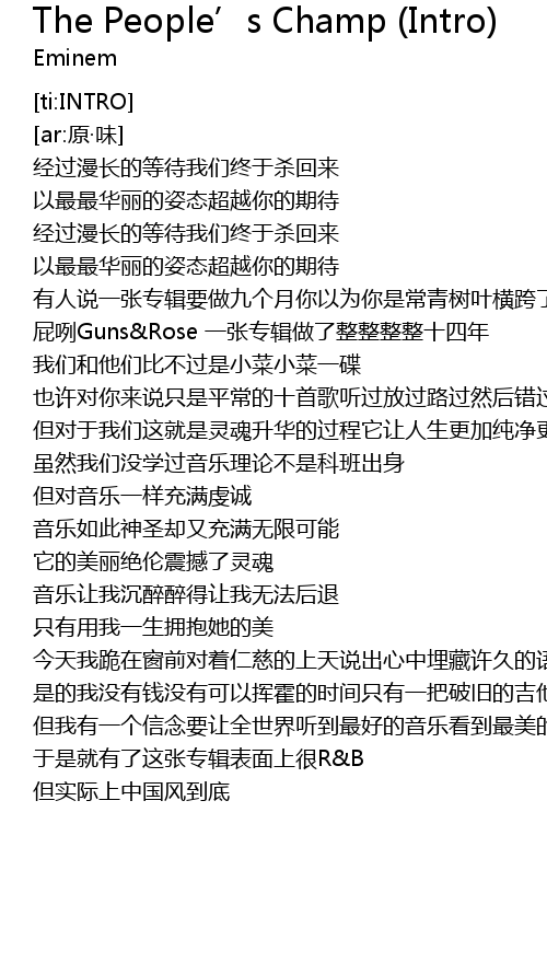 | [01:32.171] | 是的我没有钱没有可以挥霍的时间只有一把破旧的吉他六根弦六根弦 |