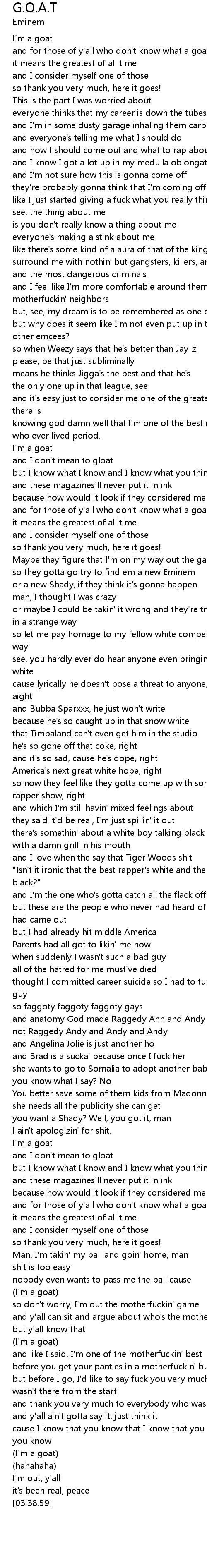[03:29.64] (I'm a goat)