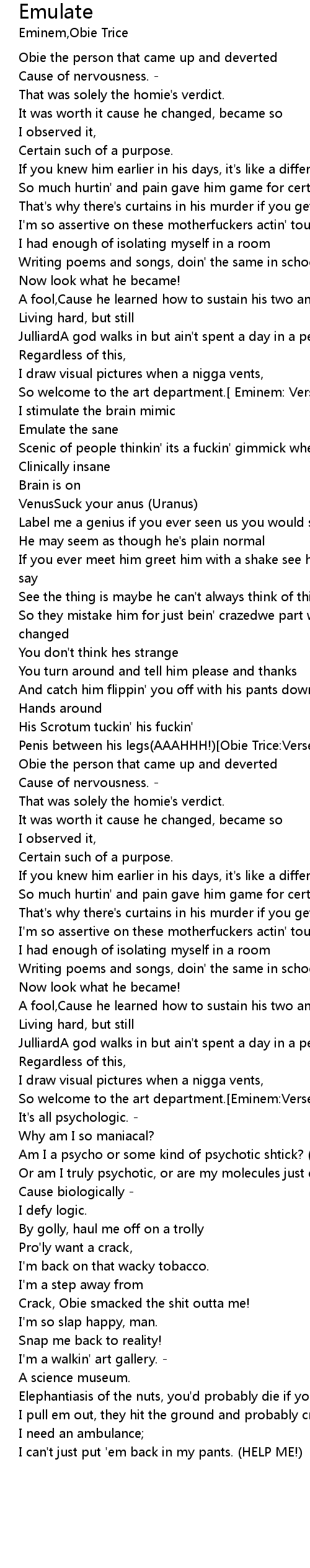 Penis between his legs(AAAHHH!)[Obie Trice:Verse 3] |
