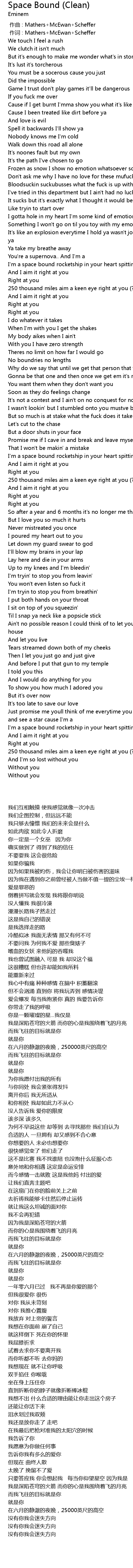 | [00:01.00] | 作词 : Mathers+McEwan+Scheffer |