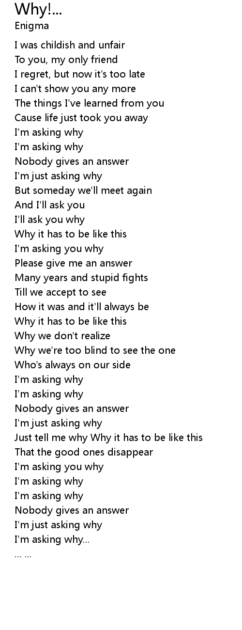 Just tell me why Why it has to be like this |
