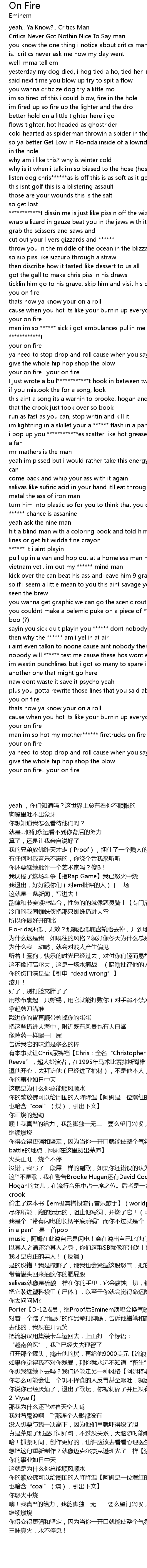 | [03:21.800] | ya need to stop drop and roll cause when you say the ************t to give the whole hip hop shop the blow |