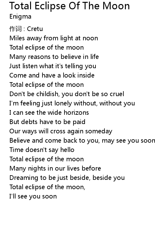 | Song | Total Eclipse Of The Moon |