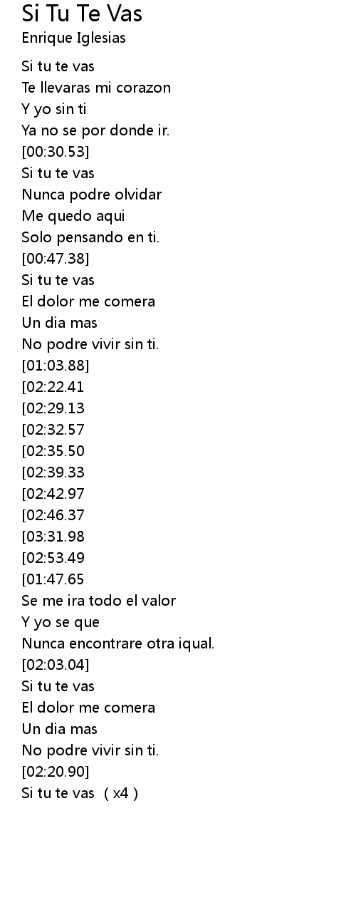 | [03:41.91][03:31.98][02:49.36][01:33.46] | Si tu te vas. |