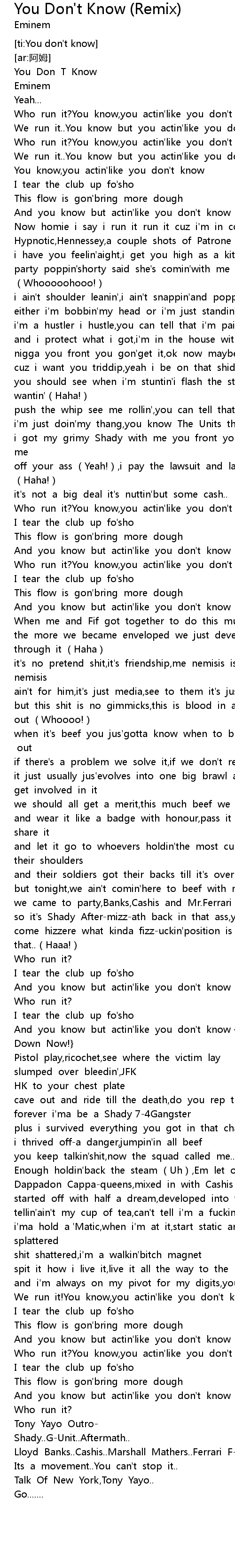 | [03:56.389] | Lloyd Banks.. Cashis.. Marshall Mathers.. Ferrari F50.. |