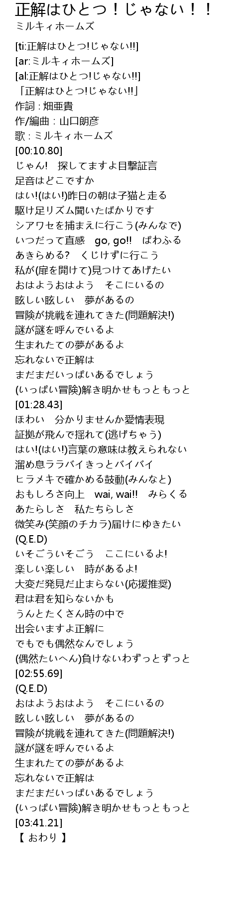 | [00:02.80] | 「正解はひとつ!じゃない!!」 |