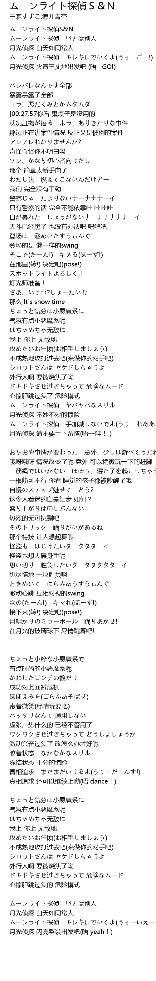 [00:11.21] 月光侦探 火冒三丈地出发吧 (唔--GO!)