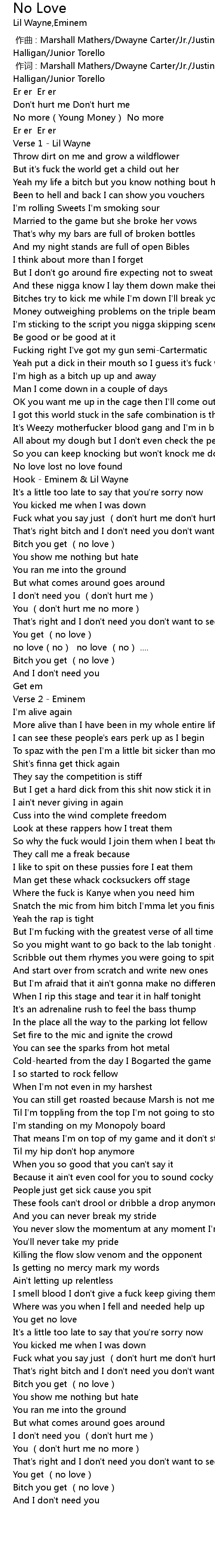 | [00:00.28] | 作词 : Marshall Mathers/Dwayne Carter/Jr./Justin Smith/Dee Dee Halligan/Junior Torello |