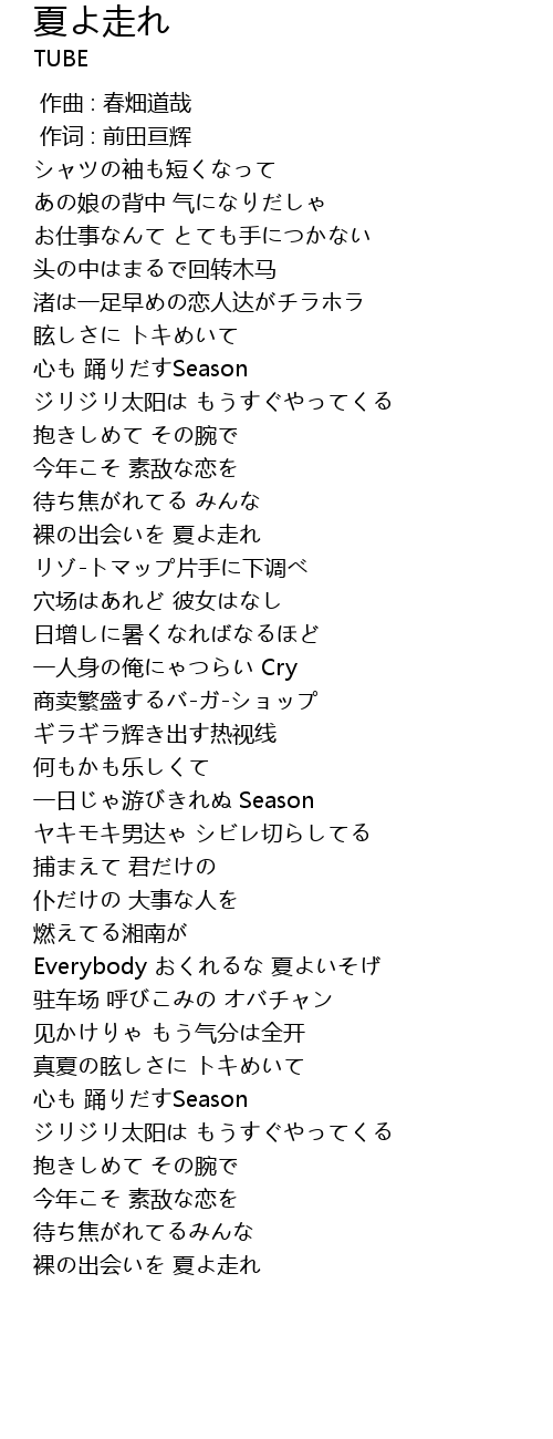 | [02:31.82] | Everybody おくれるな 夏よいそげ |