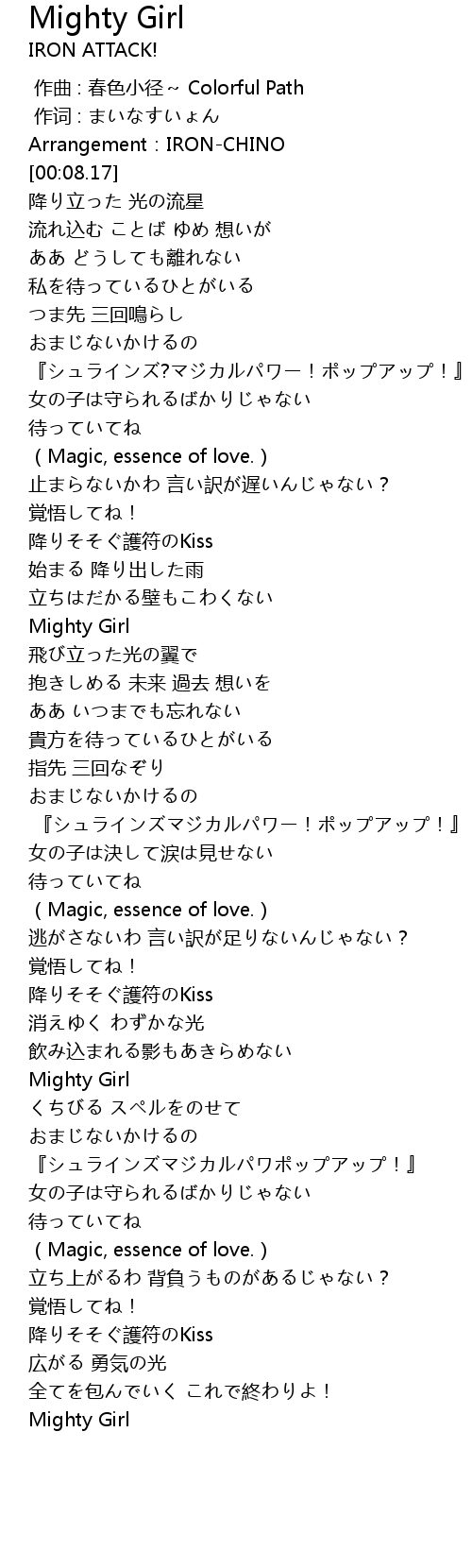 | [02:25.10] | 『シュラインズマジカルパワー!ポップアップ!』 |