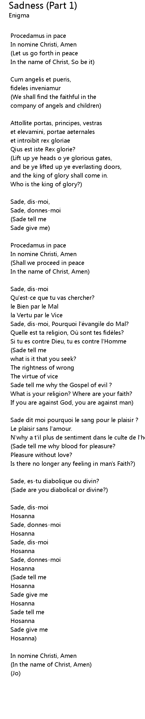 | Sade, dis-moi, Pourquoi l'évangile do Mal? | |