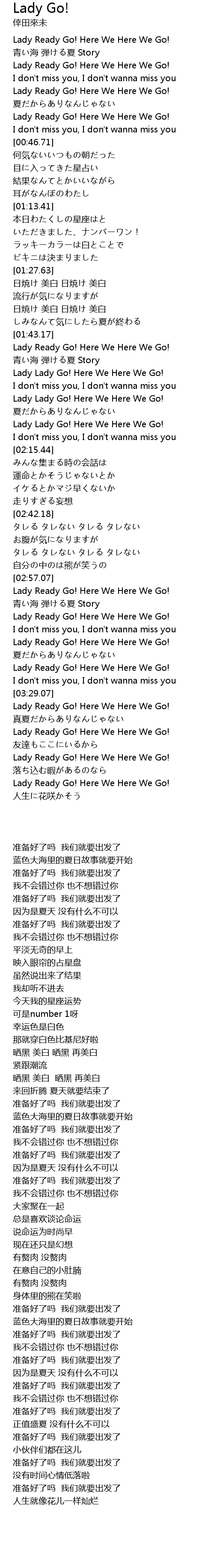 | [02:57.43] | Lady Ready Go! Here We Here We Go! |