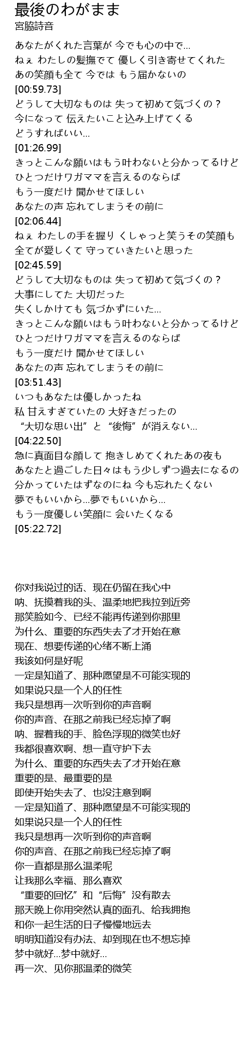 | [03:59.29] | 私 甘えすぎていたの 大好きだったの |