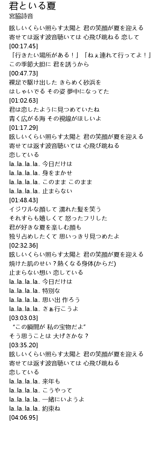 | [00:48.45] | 裸足で駆け出した きらめく砂浜を |