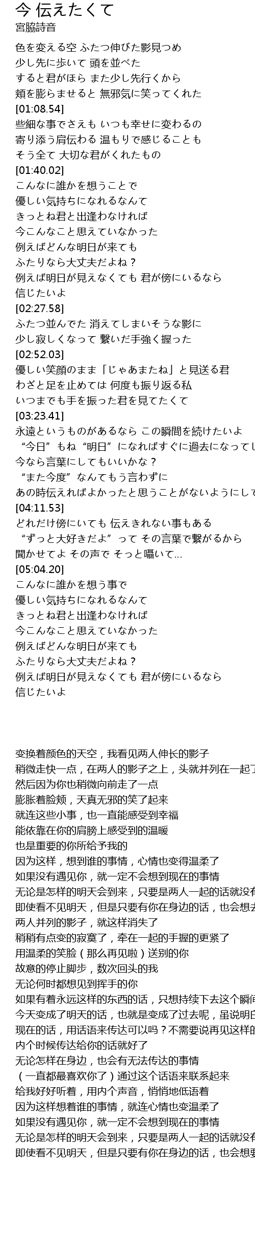 | [04:34.07] | どれだけ傍にいても 伝えきれない事もある |