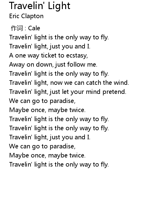 | [00:23.850] | Travelin' light, just you and I. |