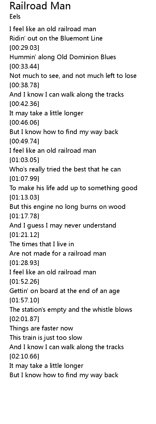 I feel like an old railroad man |