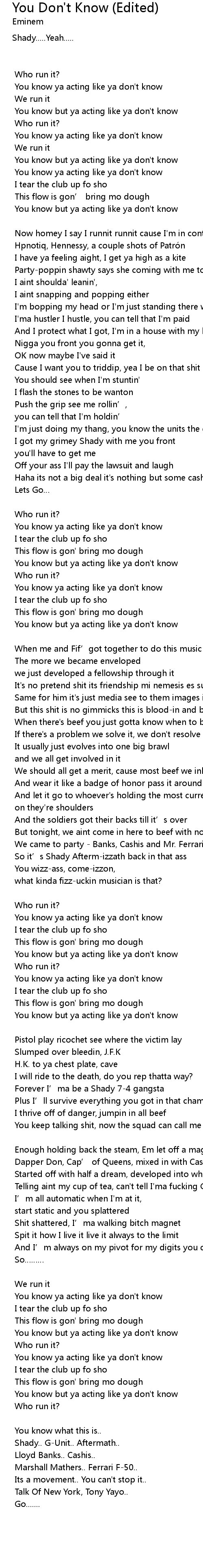 | You know ya acting like ya don' t know | |