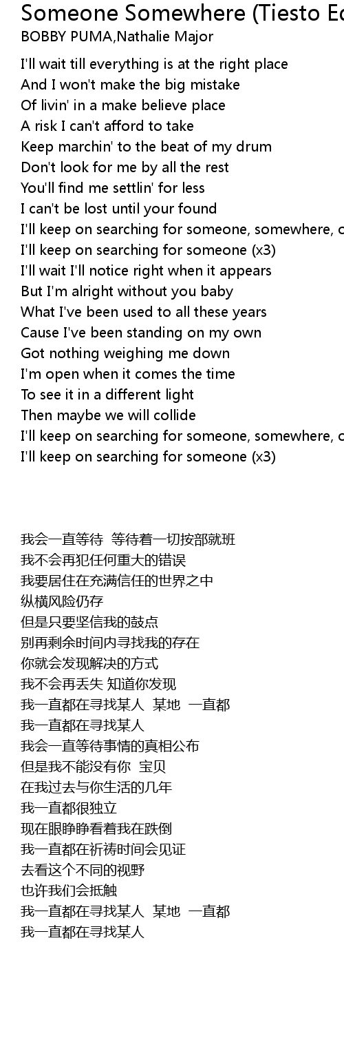 I'll keep on searching for someone (x3) |