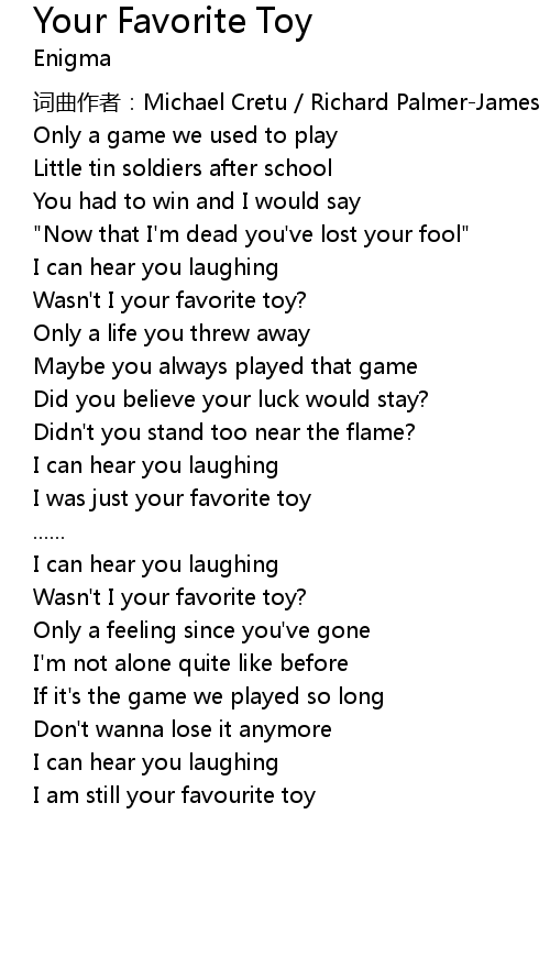 | [00:45.91] | Wasn' t I your favorite toy? |