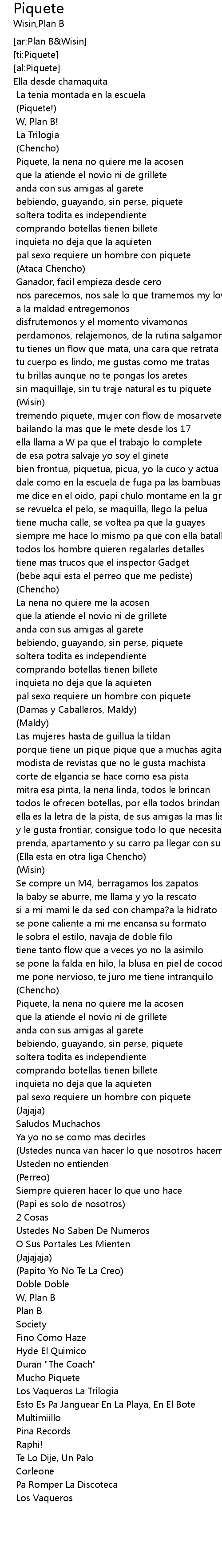 Piquete Lyrics