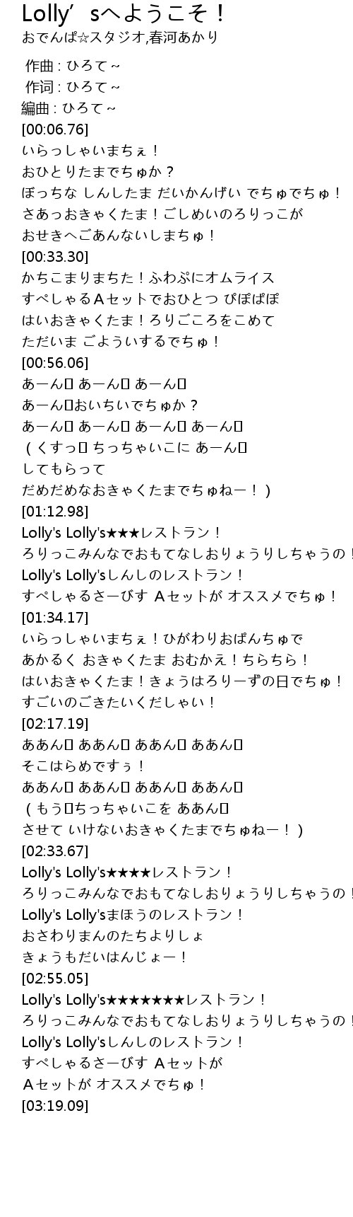 | [03:05.50] | Lolly's Lolly'sしんしのレストラン! |