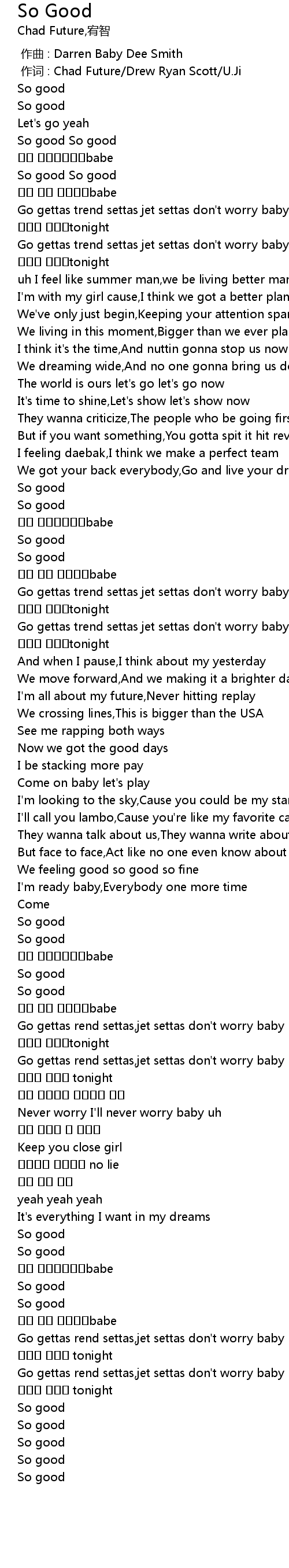 | [00:01.00] | 作词 : Chad Future/Drew Ryan Scott/U.Ji |