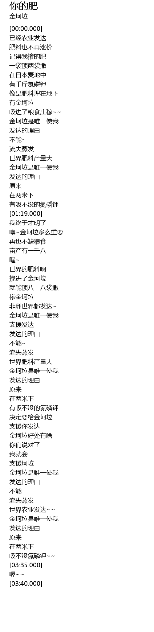 | [01:45.000] | 掺进了金坷垃 |
