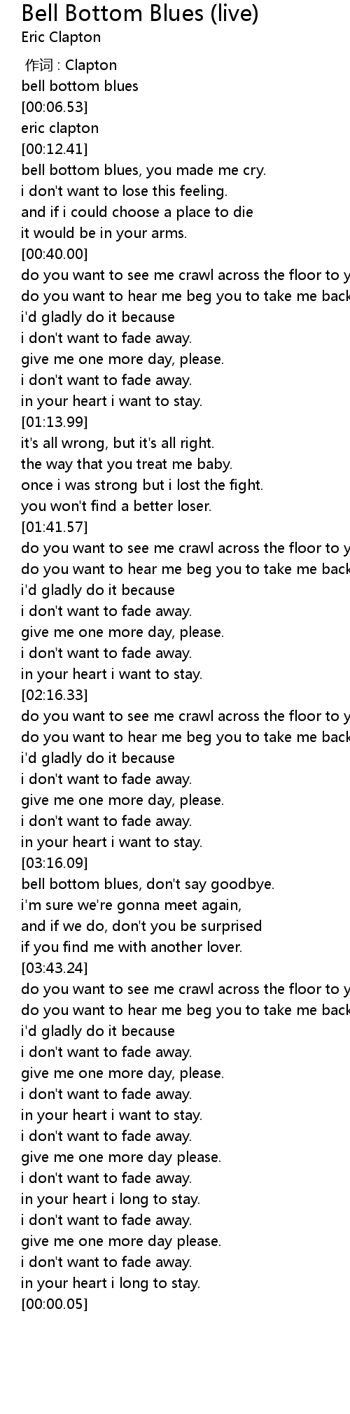 | [00:15.53] | bell bottom blues, you made me cry. |