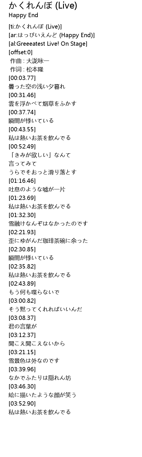 | [03:41.77] | なかでふたりは隠れん坊 |