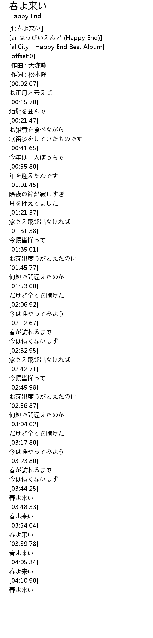 | [04:04.03] | 春よ来い |