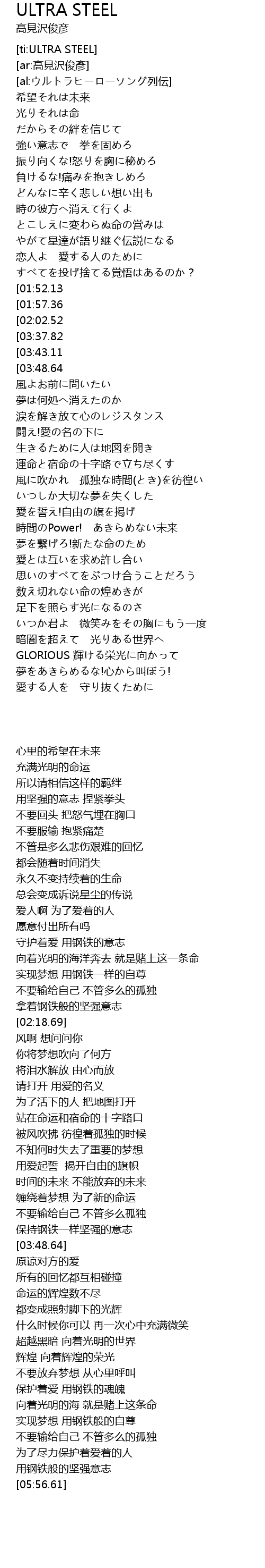 | [05:56.61][03:48.64][02:18.69] | ULTRA STEEL! |