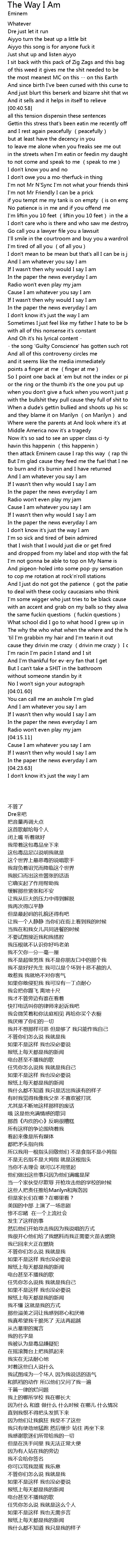 | [01:41.93] | Cause I am whatever you say I am |