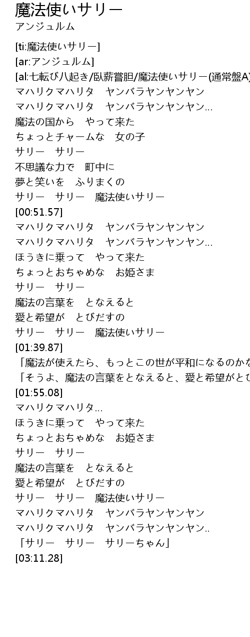 | [01:32.37] | サリー サリー 魔法使いサリー |