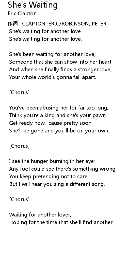 | 作词 : CLAPTON, ERIC/ROBINSON, PETER | |
