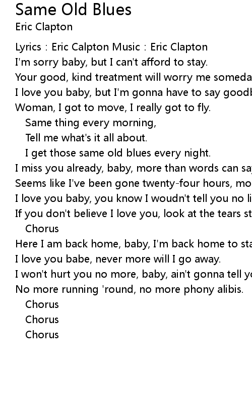 | Lyrics: Eric Calpton Music: Eric Clapton | |