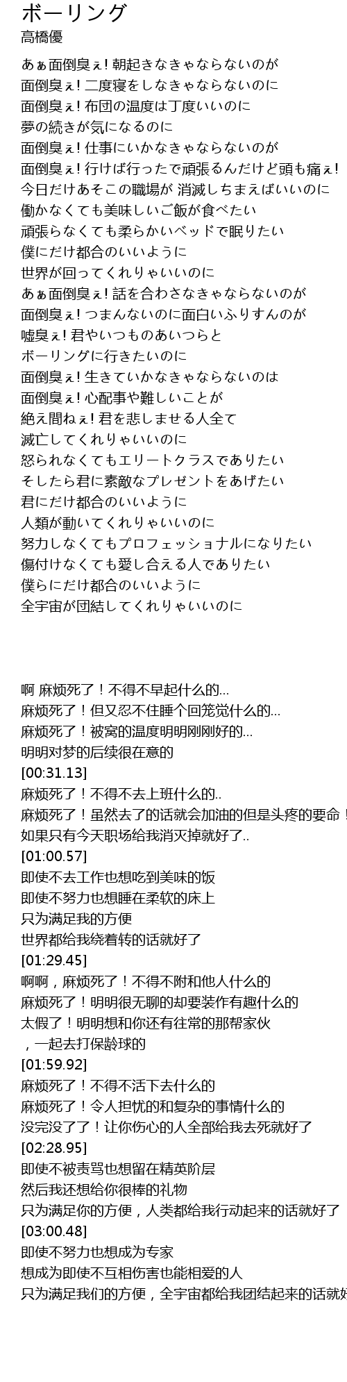 | [00:31.83] | 面倒臭ぇ! 仕事にいかなきゃならないのが |